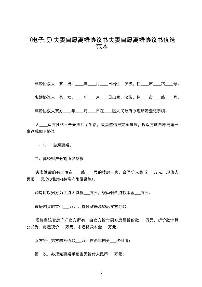 1、男女双方自愿离婚