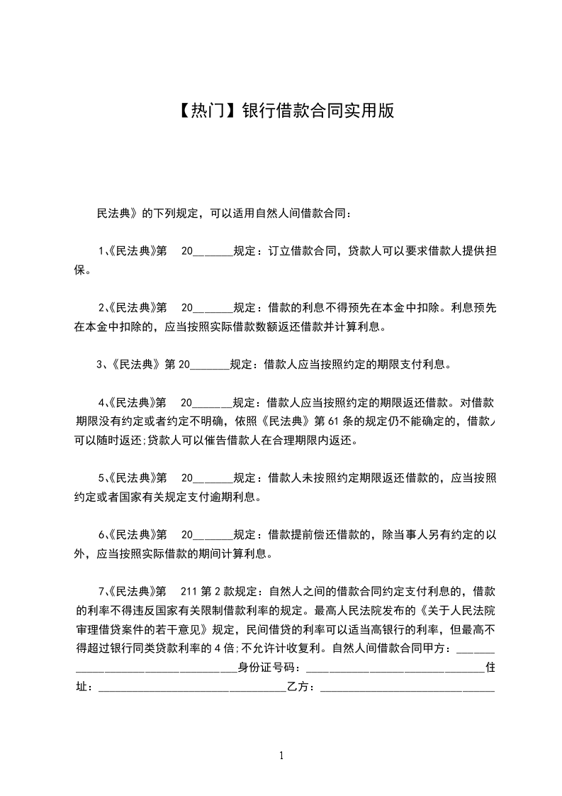 7、《民法典》第211第2款规定:自然人之间的借款合同约定支付利息的,借款的利率不得违反国家有关限制借款利率的规定。最高人民法院发布的《关于人民法院审理借贷案件的若干意见》规定,民间借贷的利率可以适当高银行的利率,但最高不得超过银行同类贷款利率的4倍;不允许计收复利。自然人间借款合同甲方:___________________________________身份证号码:_______________________________住址:_________________________________乙方:___________________________________身份证号码:_______________________________住址:_________________________________甲、乙双方在自愿的基础上经充分协商,达成以下借款合同条款: