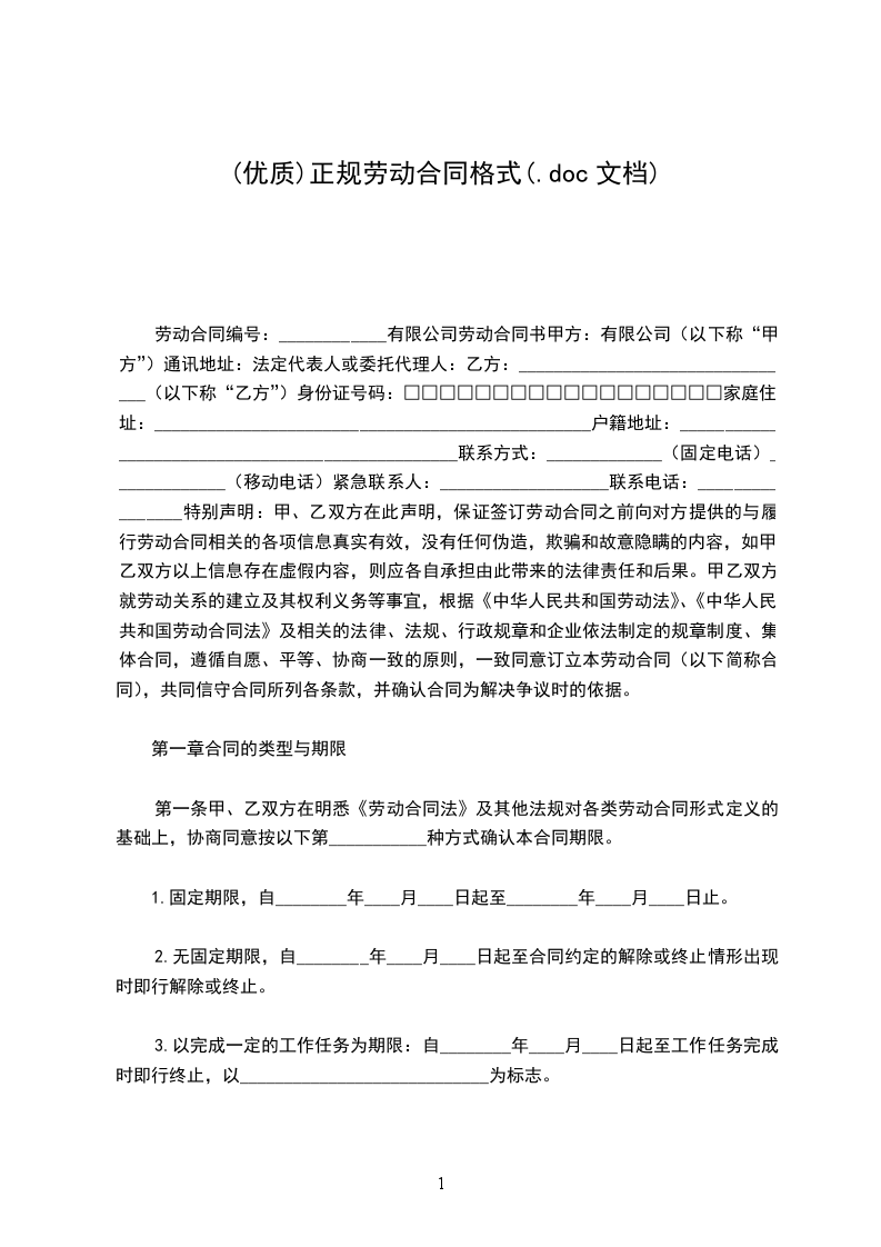 劳动合同编号:____________有限公司劳动合同书甲方:有限公司(以下称“甲方”)通讯地址:法定代表人或委托代理人:乙方:________________________________(以下称“乙方”)身份证号码:□□□□□□□□□□□□□□□□□□家庭住址:_________________________________________________户籍地址:_________________________________________________联系方式:_____________(固定电话)_____________(移动电话)紧急联系人:___________________联系电话:________________特别声明:甲、乙双方在此声明,保证签订劳动合同之前向对方提供的与履行劳动合同相关的各项信息真实有效,没有任何伪造,欺骗和故意隐瞒的内容,如甲、乙双方以上信息存在虚假内容,则应各自承担由此带来的法律责任和后果。甲乙双方就劳动关系的建立及其权利义务等事宜,根据《中华人民共和国劳动法》、《中华人民共和国劳动合同法》及相关的法律、法规、行政规章和企业依法制定的规章制度、集体合同,遵循自愿、平等、协商一致的原则,一致同意订立本劳动合同(以下简称合同),共同信守合同所列各条款,并确认合同为解决争议时的依据。
