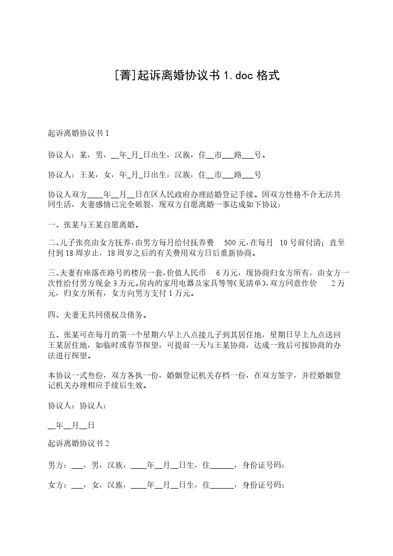 起诉离婚协议书2男方:___,男,汉族,____年__月__日生,住______,身份证号码: