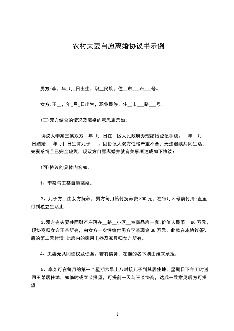 一、与自愿离婚。