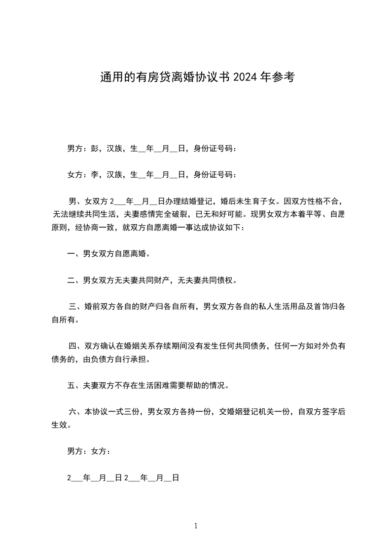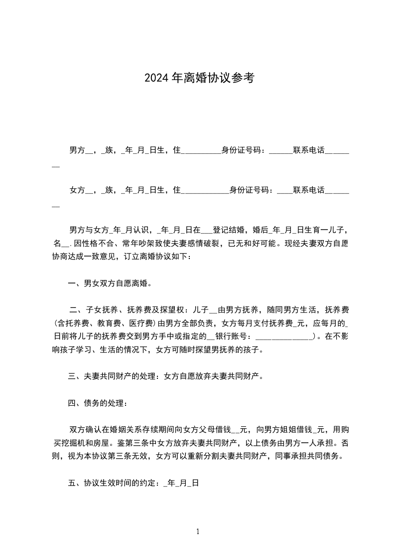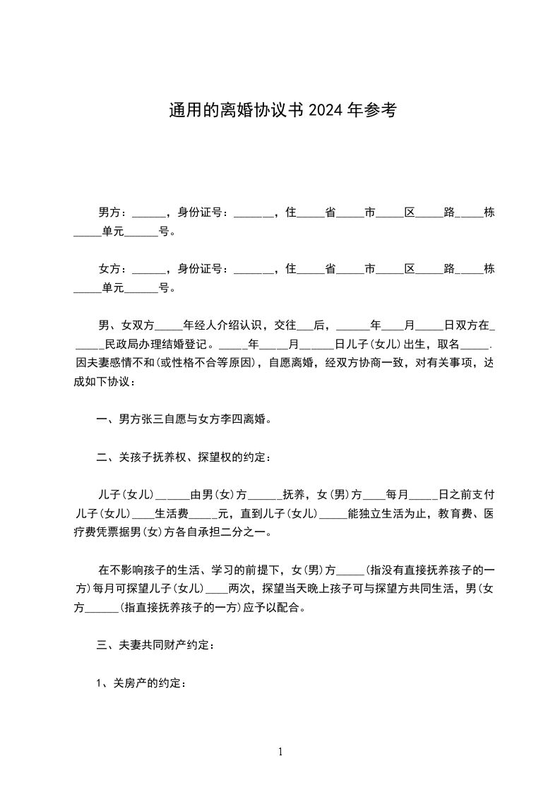 男方:______,身份证号:_______,住_____省_____市_____区_____路_____栋_____单元______号。