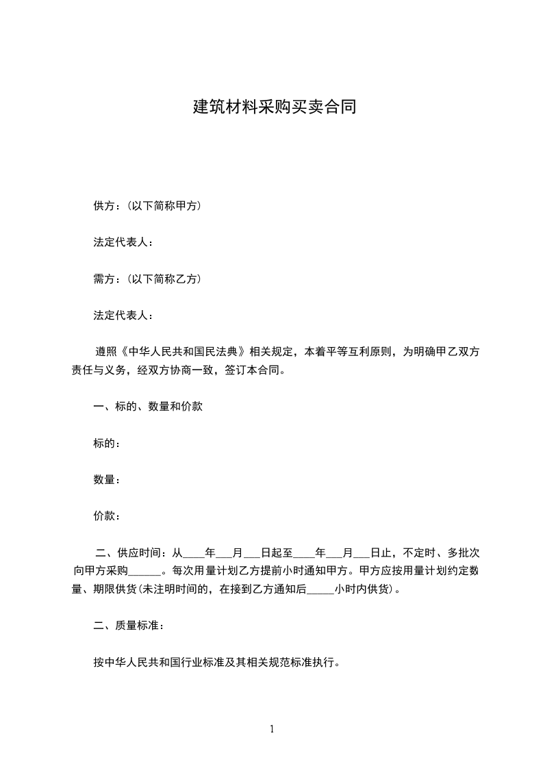 二、供应时间:从____年___月___日起至____年___月___日止,不定时、多批次向甲方采购______。每次用量计划乙方提前小时通知甲方。甲方应按用量计划约定数量、期限供货(未注明时间的,在接到乙方通知后_____小时内供货)。