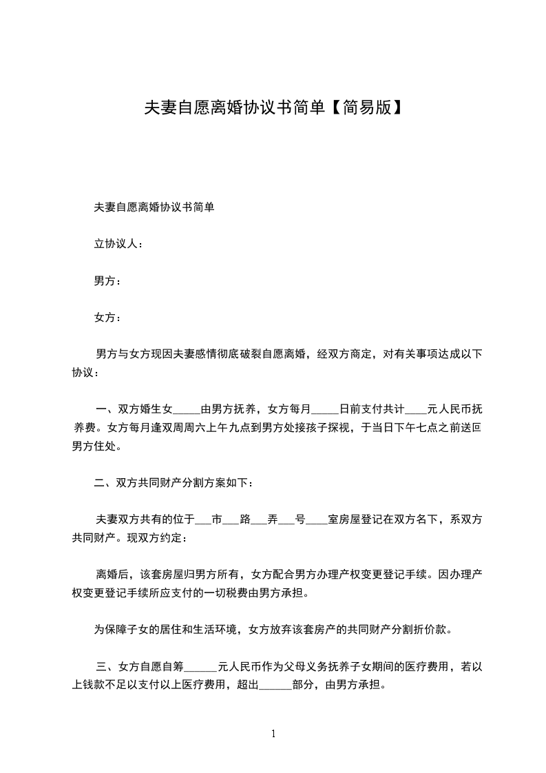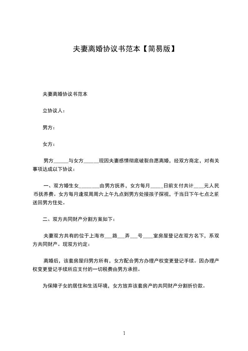 双方20___年3月10日在镇政府登记结婚,婚后20___年11月1日生育一女儿名:_________.现夫妻感情已经完全破裂,没有和好可能,经双方协商达成一致意见,订立离婚协议如下: