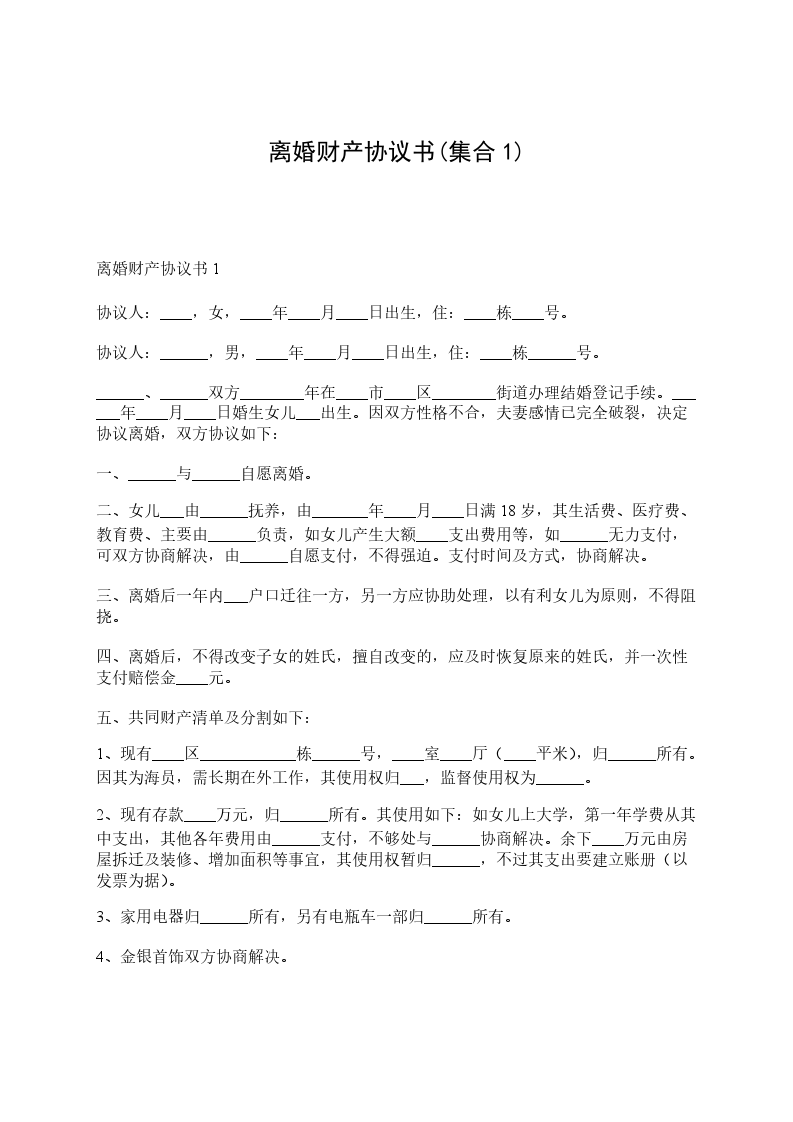 无财产离婚协议书5___,男,生__年_月_日,汉族,____公司员工,住__市__路__号___室;