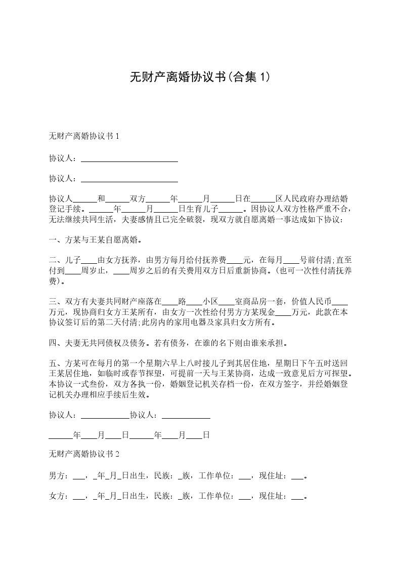 无财产离婚协议书2甲方(男方)姓名:______性别:_____身份证号码:_____住址:_____乙方(女方)姓名:_____性别:_____身份证号码:_____住址:_____