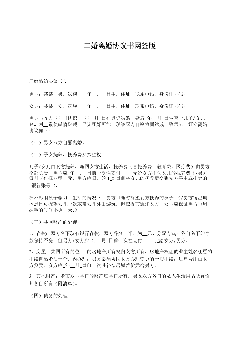 五、协议生效时间的约定:本协议一式三份,自婚姻登记机关颁发《离婚证》之日起生效,男、女双方各执一份,婚姻登记机关存档一份。