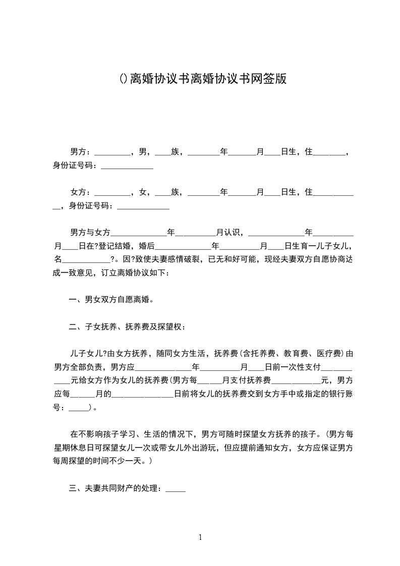 男方与女方______年___月认识,______年___月___日在______市民政局登记结婚,婚后无生育。两人因性格不合,致使夫妻感情破裂,已无和好可能,现经夫妻双方自愿协商达成一致意见,订立离婚协议如下: