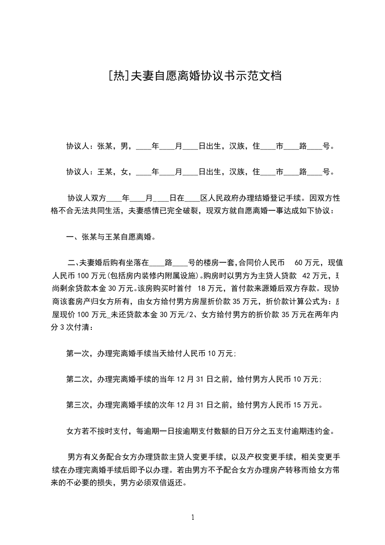 一、男方____与女方____自愿离婚。
