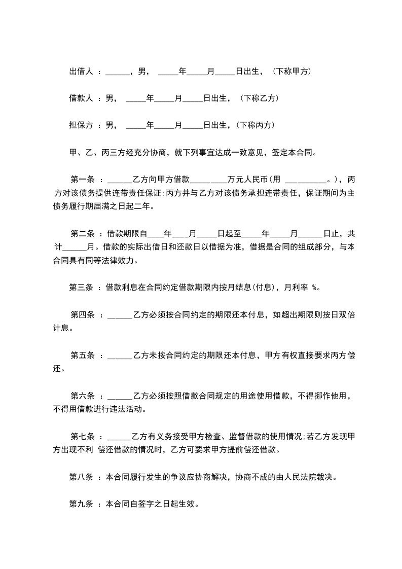 根据国家法律、法规,甲、乙双方经友好协商,现就甲方向乙方出借款项等事宜达成一致,并签订本合同: