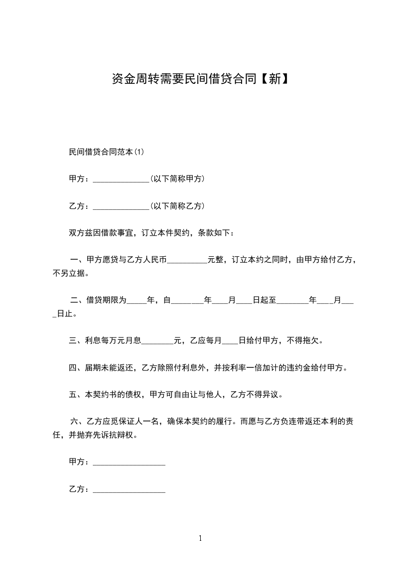 一、乙方贷给甲方人民币(大写)_____________________,_____________________前交付甲方。