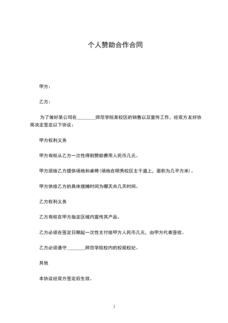 为了做好某公司在________师范学院某校区的销售以及宣传工作,经双方友好协商决定签定以下协议: