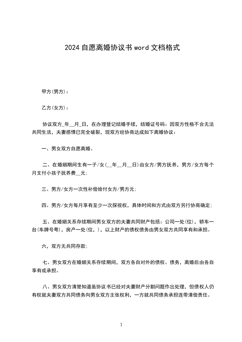 一、与自愿离婚。