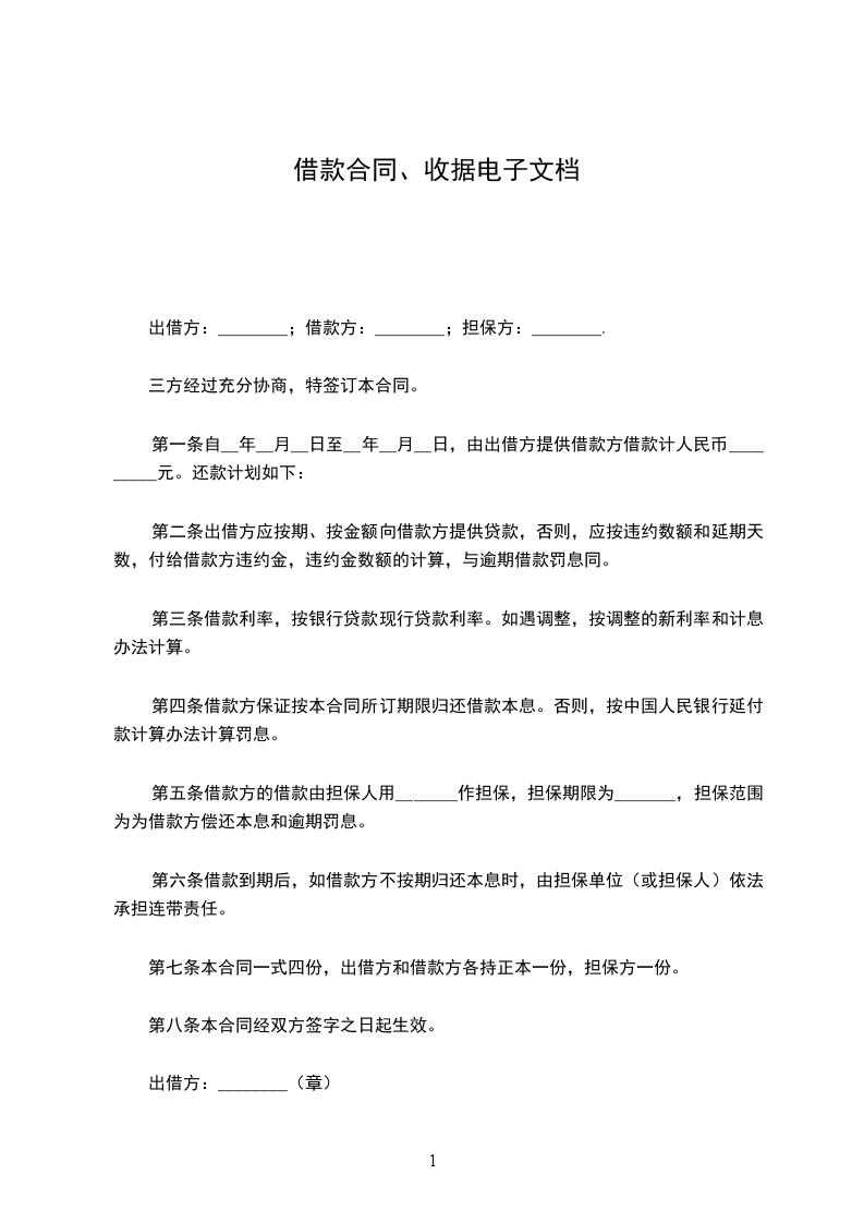 第七条本合同一式四份,出借方和借款方各持正本一份,担保方一份。