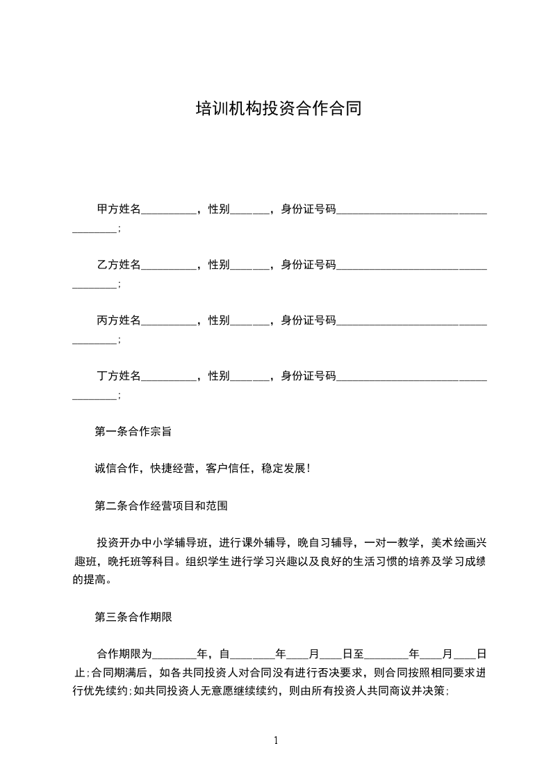 合作期限为________年,自________年____月____日至________年____月____日止;合同期满后,如各共同投资人对合同没有进行否决要求,则合同按照相同要求进行优先续约;如共同投资人无意愿继续续约,则由所有投资人共同商议并决策;