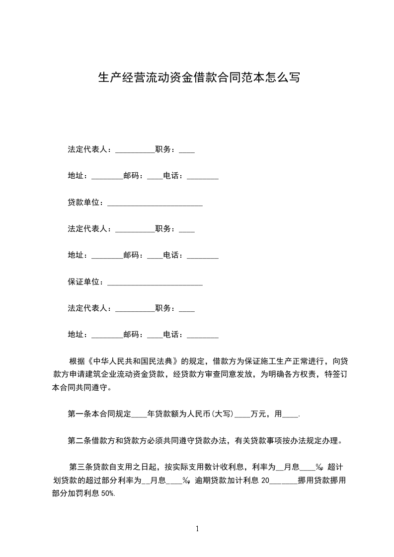 根据《中华人民共和国民法典》的规定,借款方为保证施工生产正常进行,向贷款方申请建筑企业流动资金贷款,经贷款方审查同意发放,为明确各方权责,特签订本合同共同遵守。