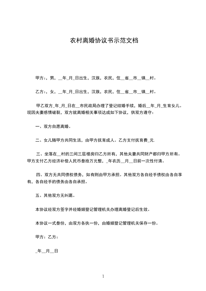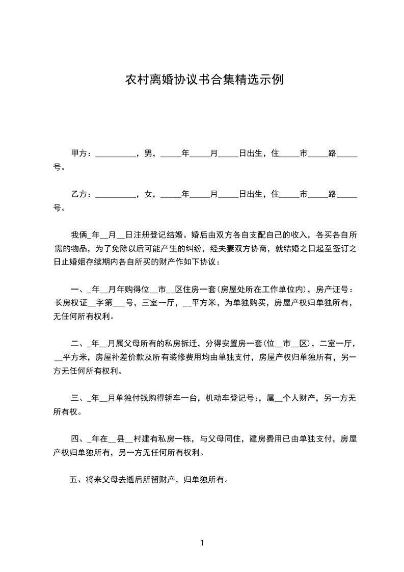 20__年农村离婚协议书合集示范文档