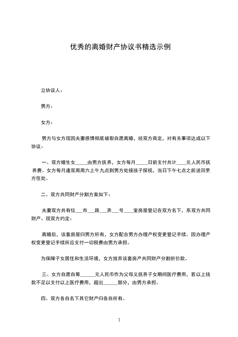 男方与女方现因夫妻感情彻底破裂自愿离婚,经双方商定,对有关事项达成以下协议: