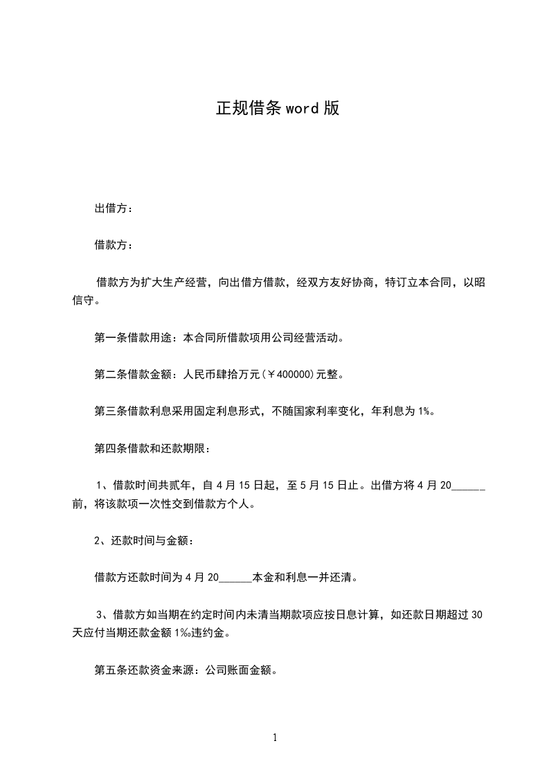 1、借款时间共贰年,自4月15日起,至5月15日止。出借方将4月20______前,将该款项一次性交到借款方个人。