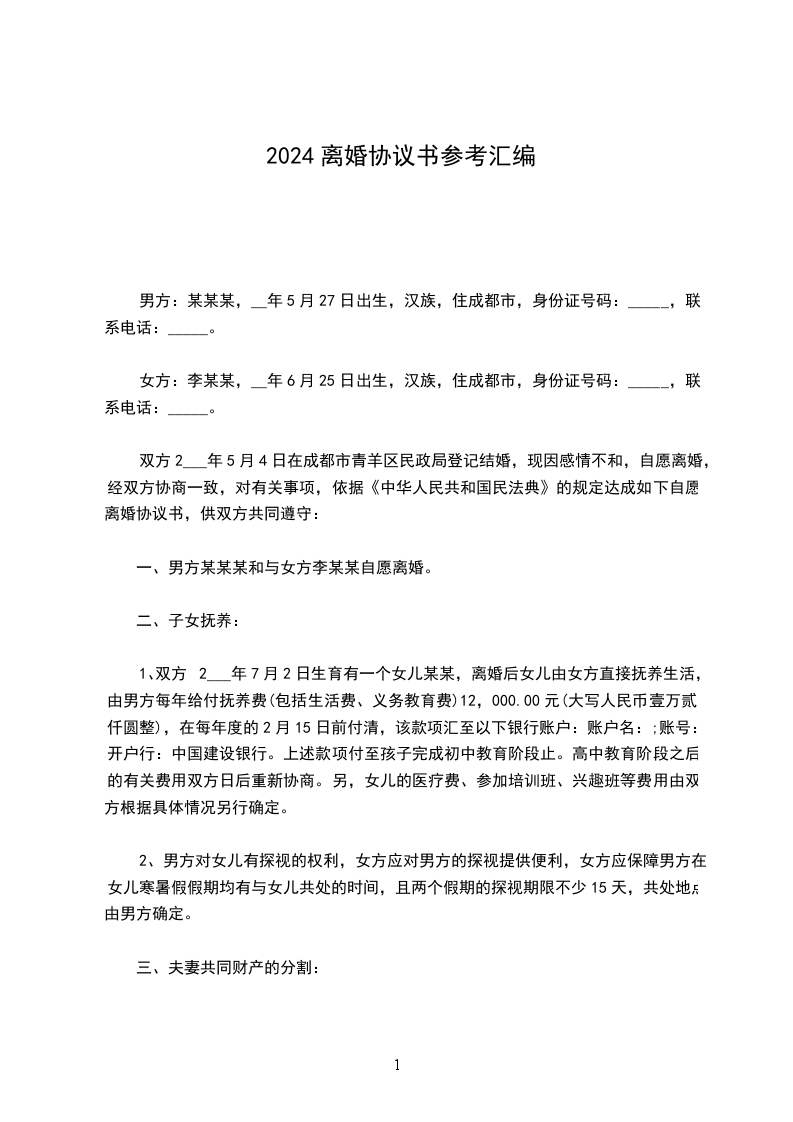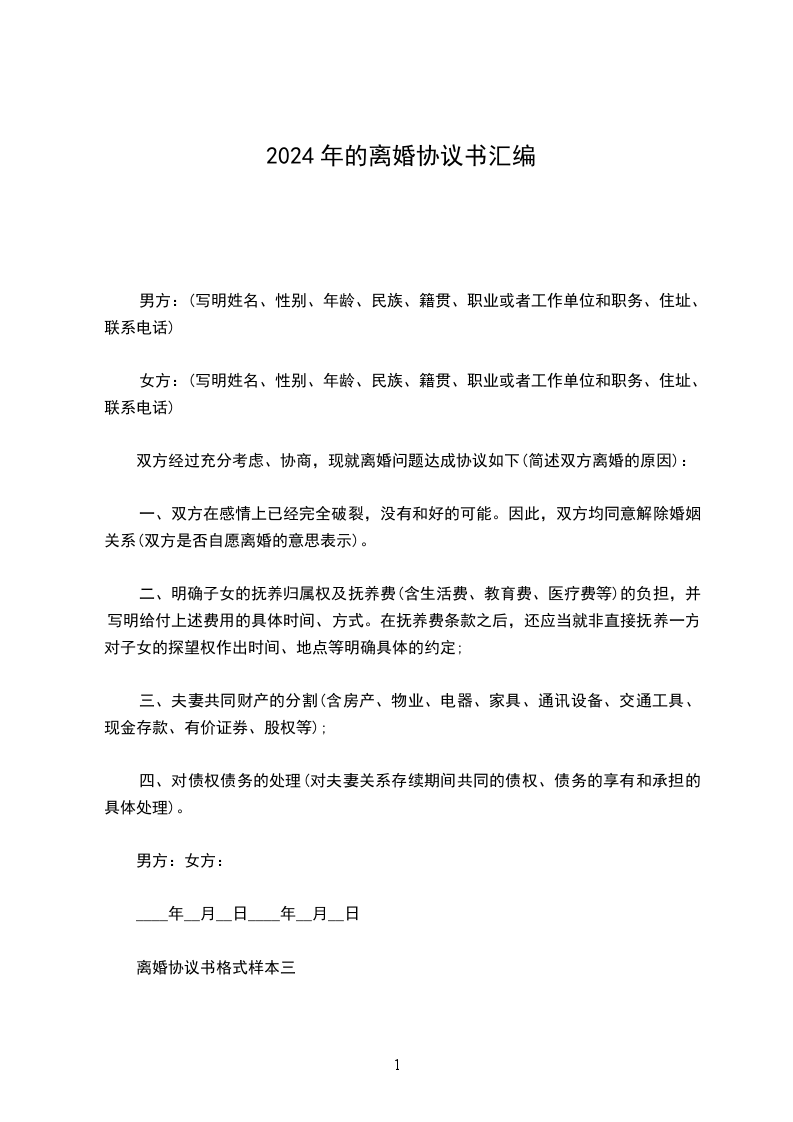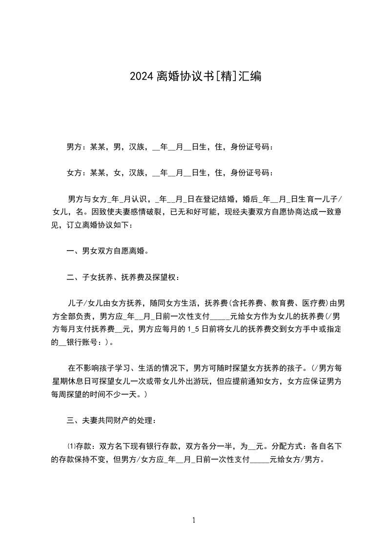 2024离婚协议书[精]汇编