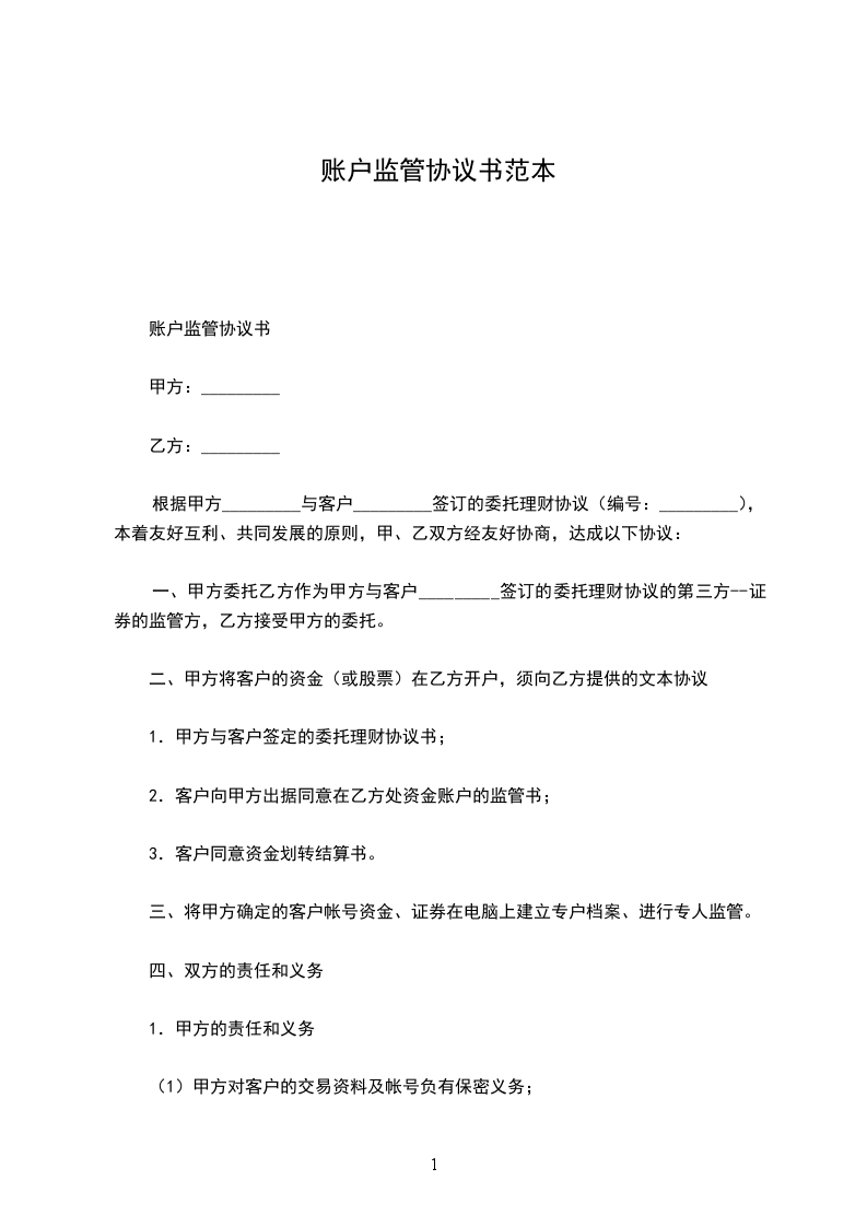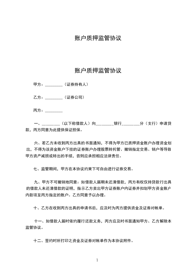 2。客户向甲方出据同意在乙方处资金账户的监管书;