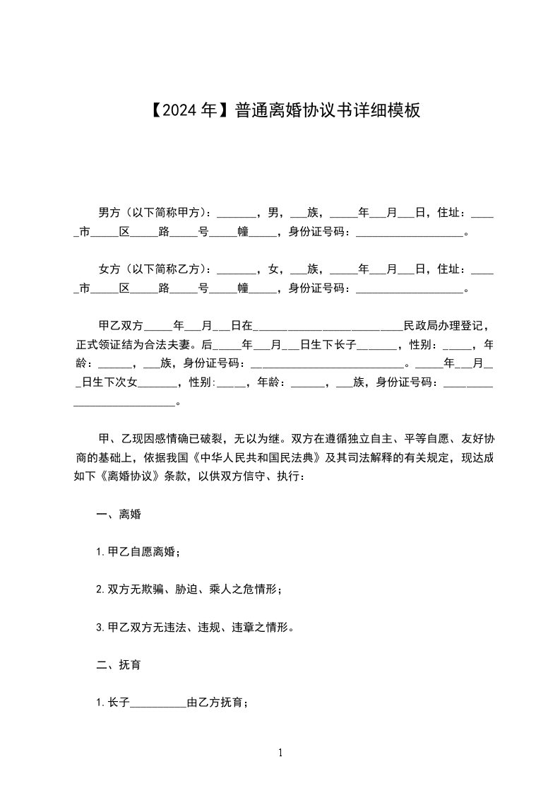 男方女方结婚多年来,没有夫妻感情,现经双方友好协商,达成如下一致意见: