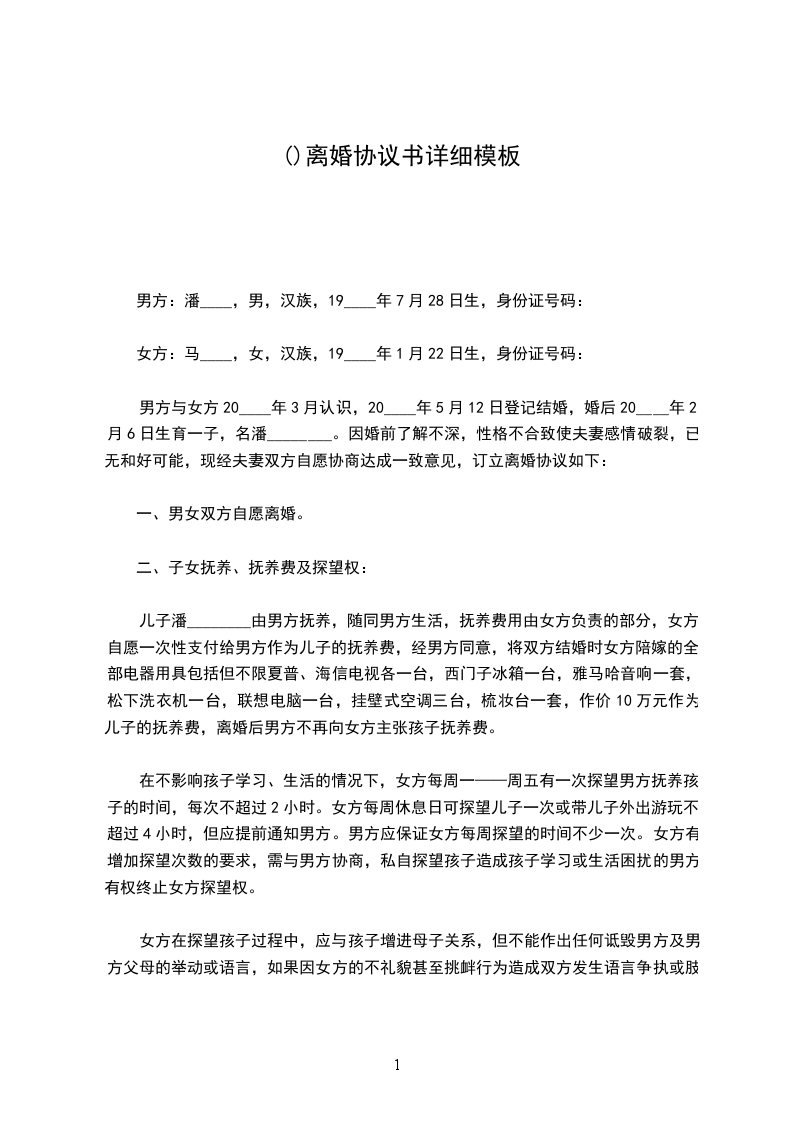 六、____方有权每______探视孩子一次,但不得妨碍孩子的正常学习和生活。