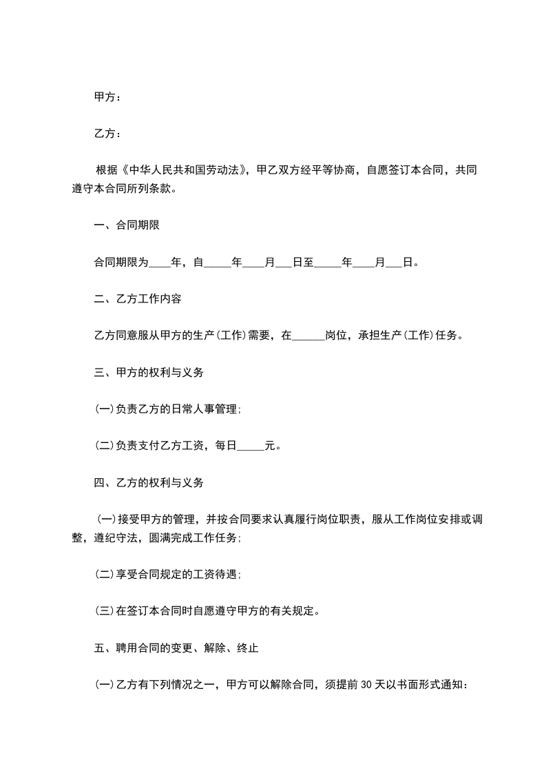 乙方同意服从甲方的生产(工作)需要,在______岗位,承担生产(工作)任务。