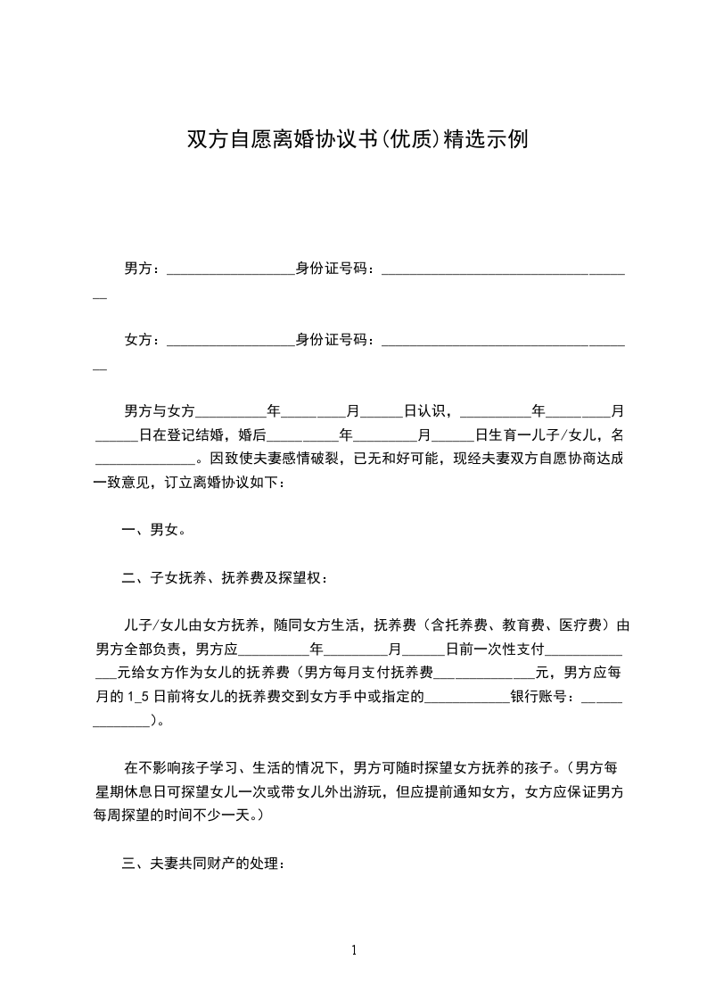 女方:__________________身份证号码:____________________________________