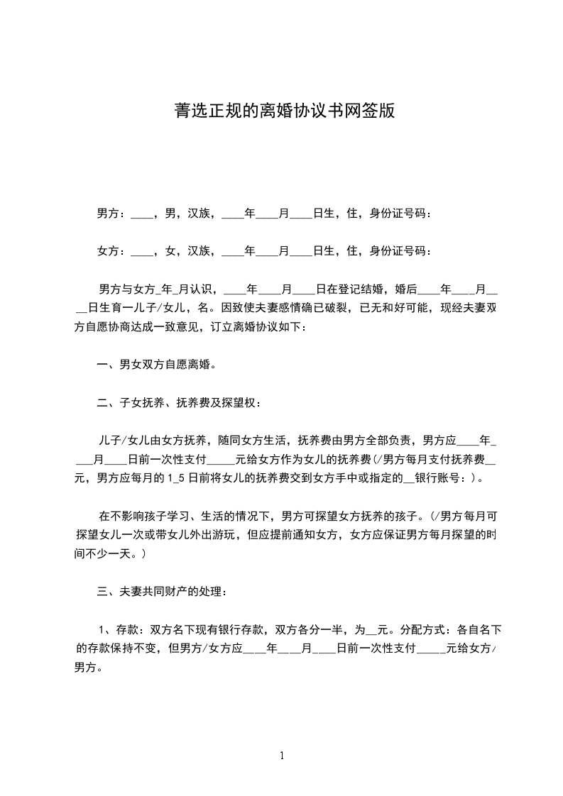 1、存款:双方名下现有银行存款,双方各分一半,为__元。分配方式:各自名下的存款保持不变,但男方/女方应____年____月____日前一次性支付_____元给女方/男方。