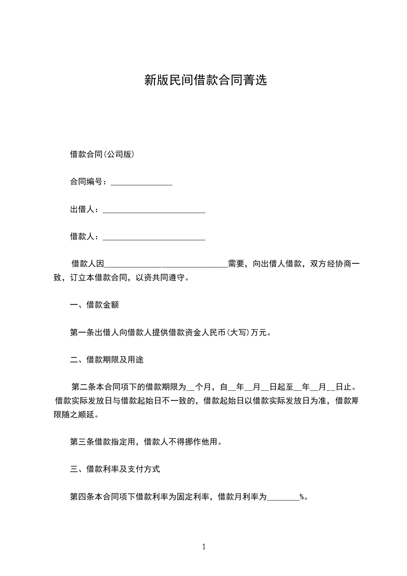 借款合同(公司版)