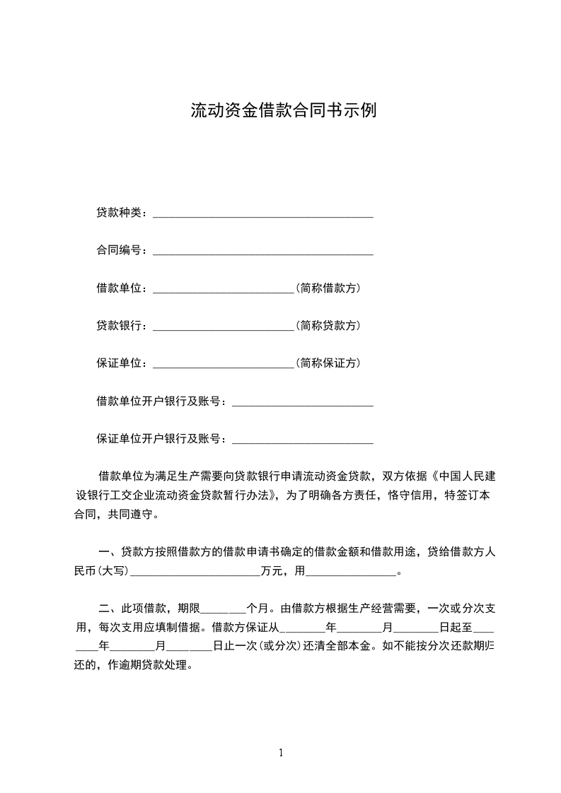 借款单位为满足一产需要向贷款银行申请流动资金贷款,双方依据《工交企业流动资金贷款暂行办法》,为了明确各方责任,恪守信用,特签订本合同,共同遵守。