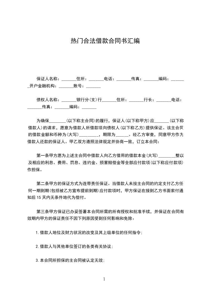 3、丙方提供的保证方式为连带责任保证,当乙方未按本协议约定按时清偿本协议担保范围内债务时,甲方有权直接向丙方追偿,丙方应立即向甲方清偿借款人的全部到期应付款项。