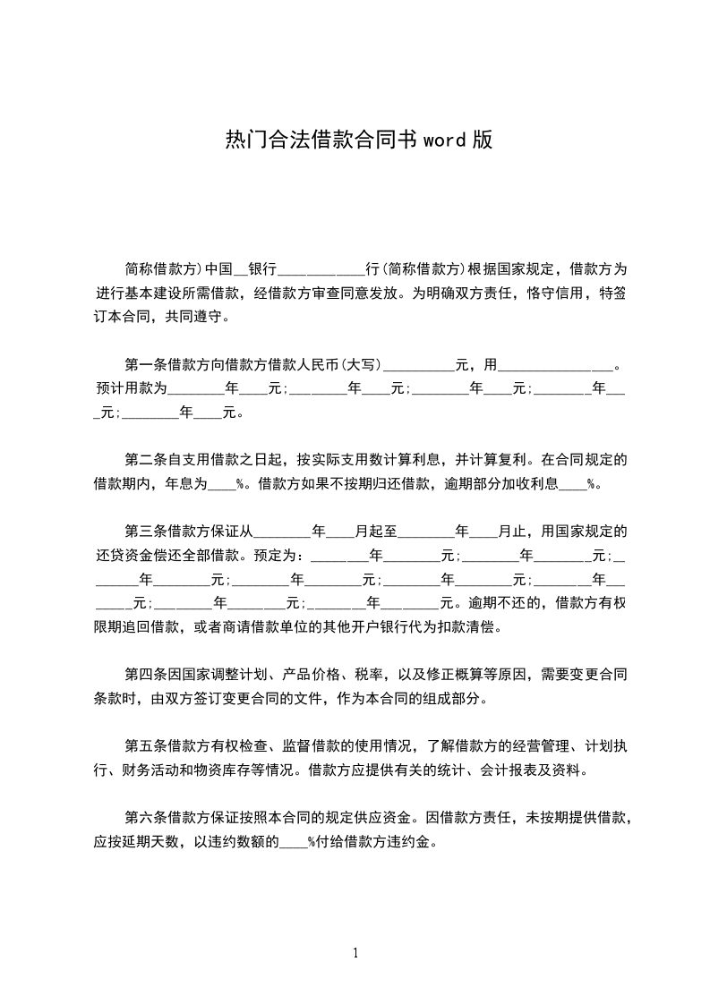 借款金额:_______元(大写:)。借款用途:_______。