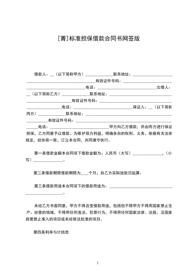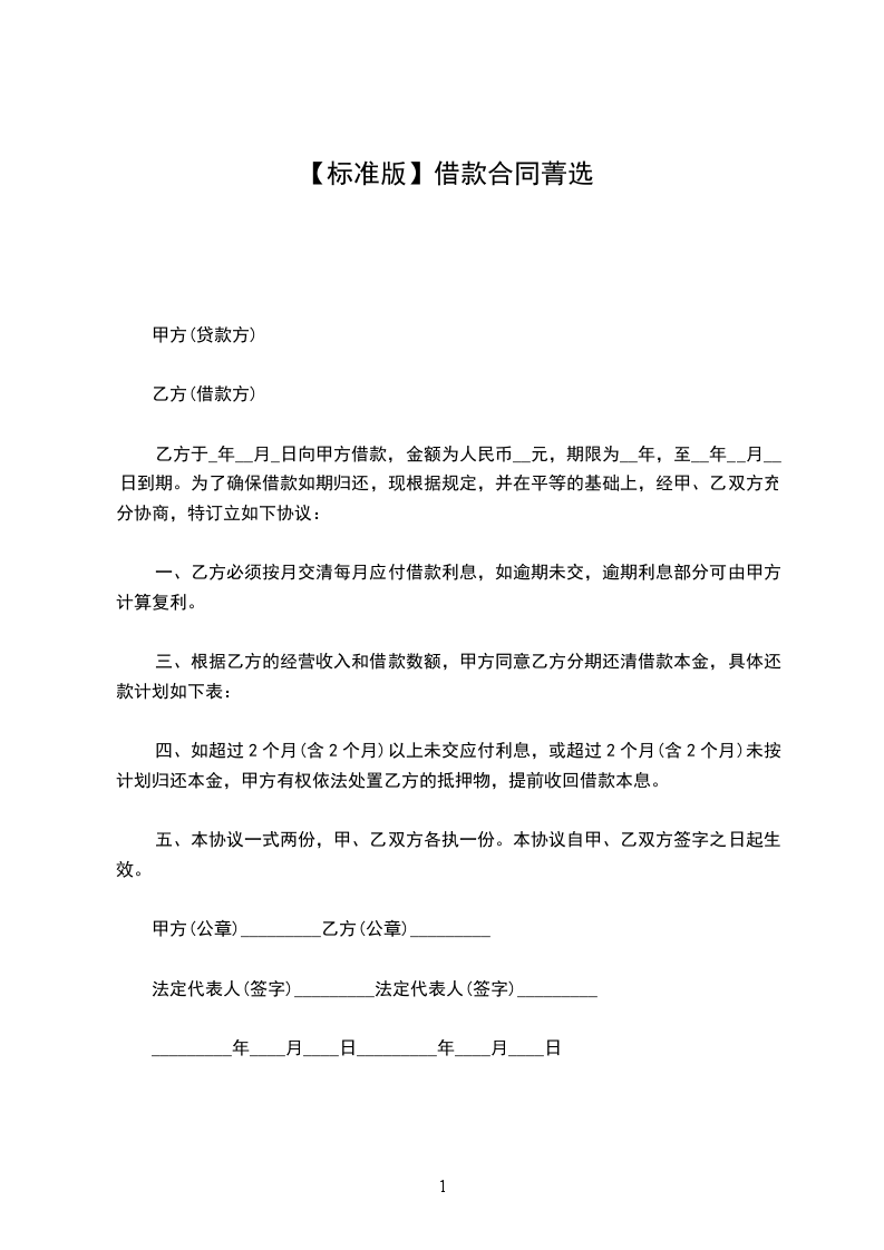 第三条借款期限定为_______年_______月(指从第一笔贷款之日起到最后还清全部本息)。借款利率,月息为_______‰;年息为_______%(如国家利率调整:1、利率不变;2、相应调整),按_______计收利息。贷款逾期不还,按国家规定的相应贷款利率加收百分之二十利息。