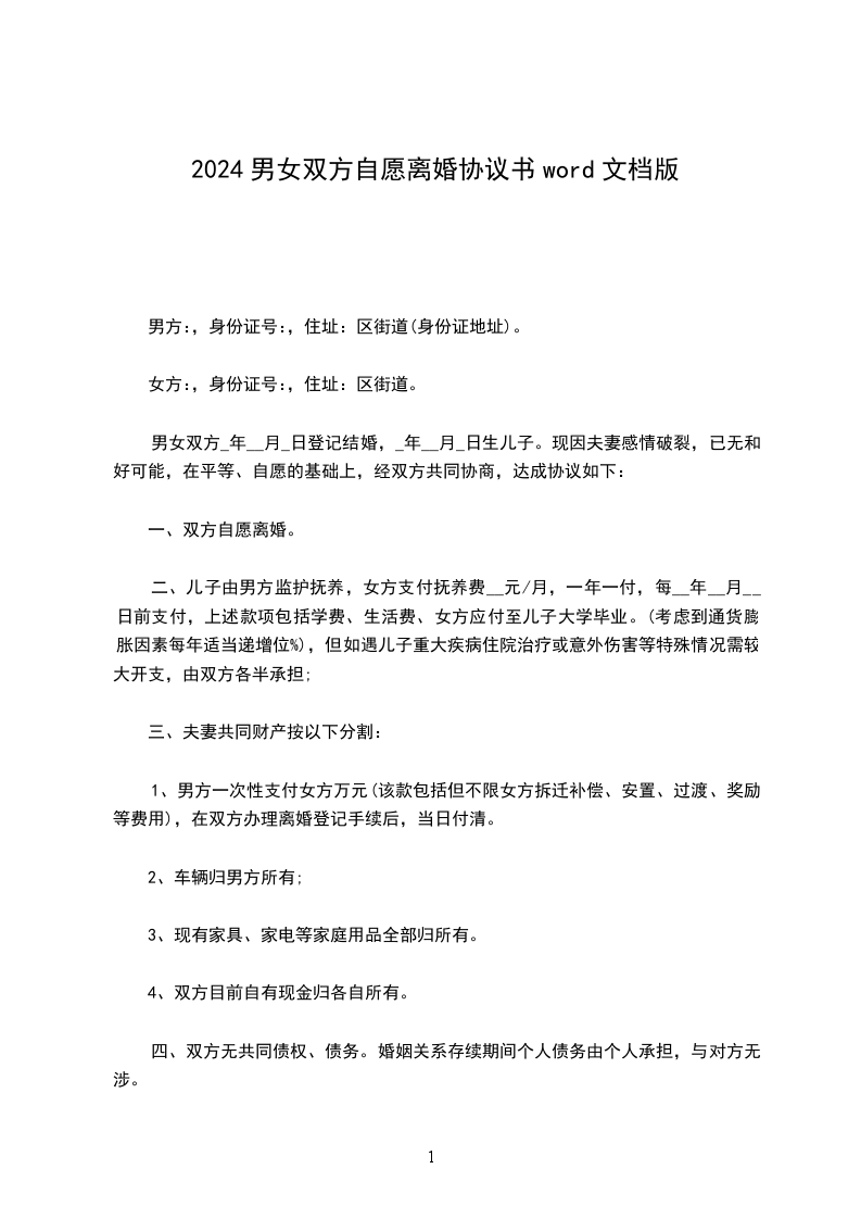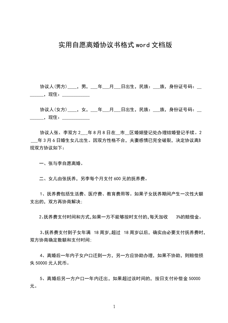 本协议由男女双方签字,自取得《离婚证》之日起生效。