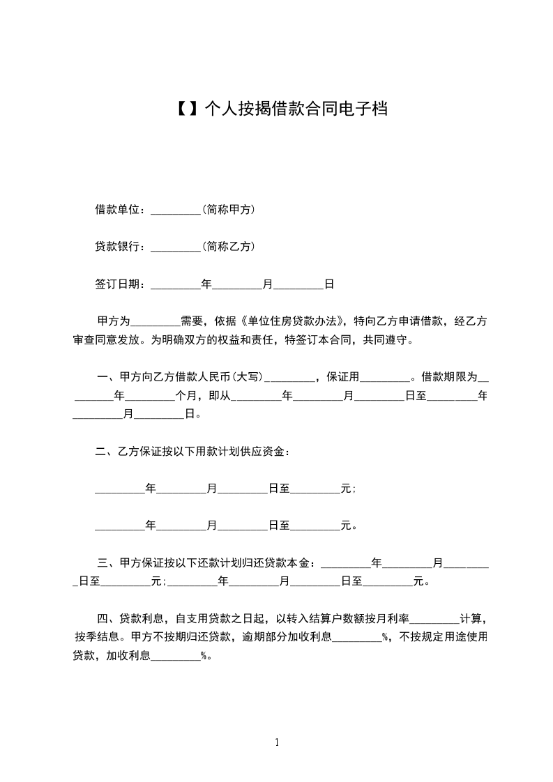 甲方为_________需要,依据《单位住房贷款办法》,特向乙方申请借款,经乙方审查同意发放。为明确双方的权益和责任,特签订本合同,共同遵守。