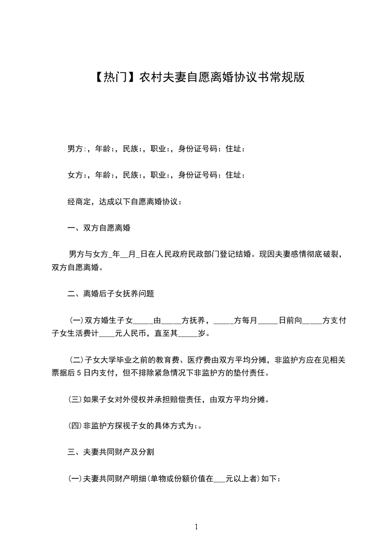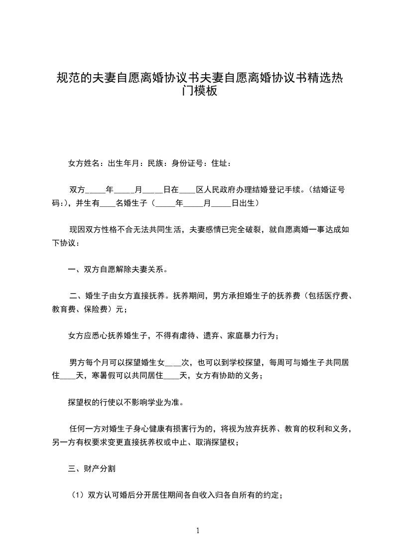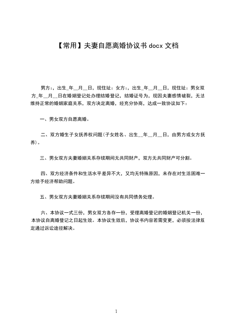 一、男女双方自愿离婚。