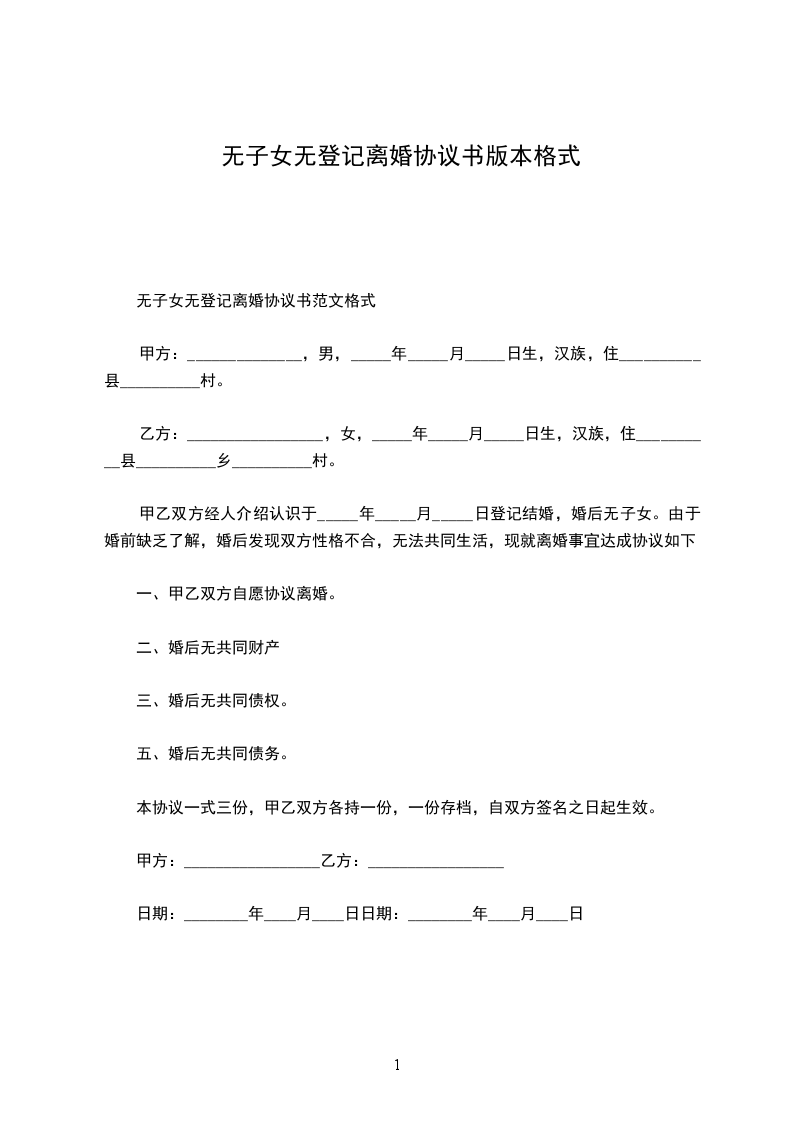 ③双方无共同财产。