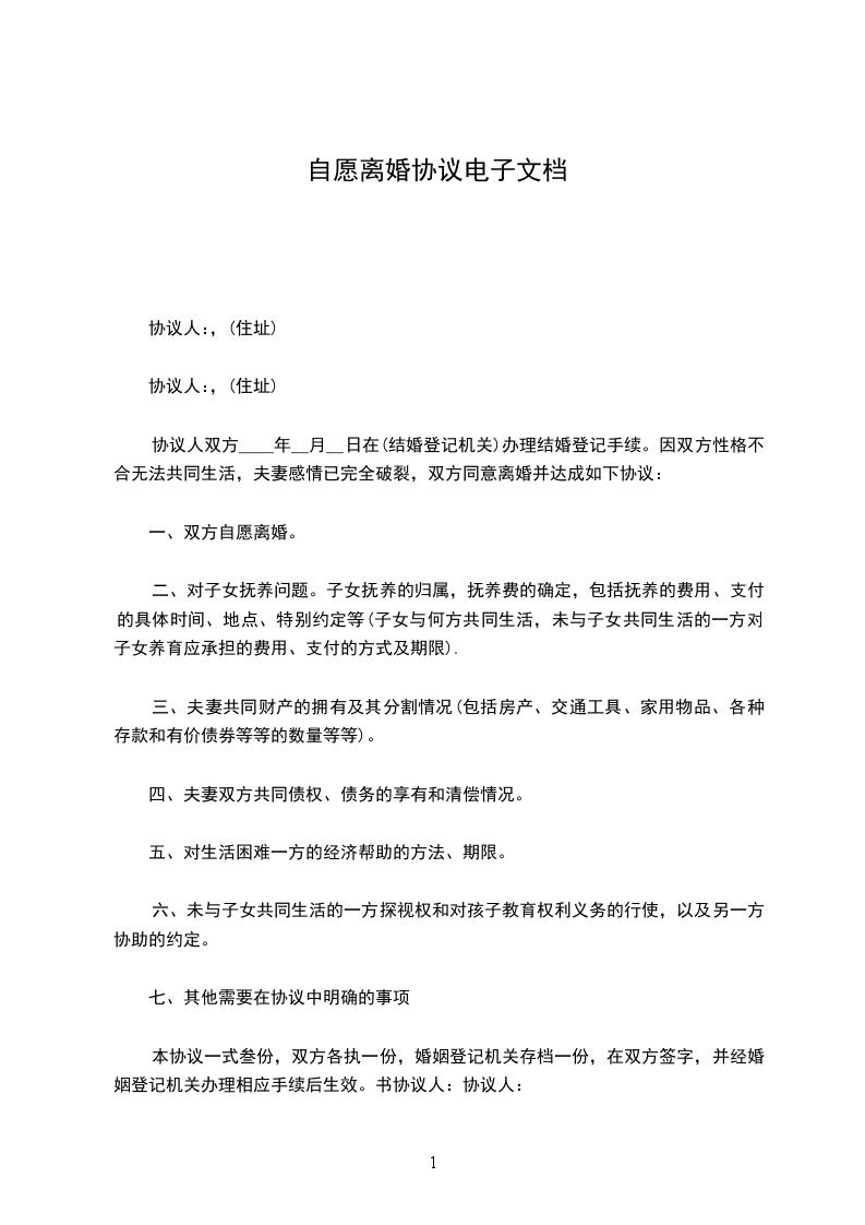 一、男女双方自愿离婚