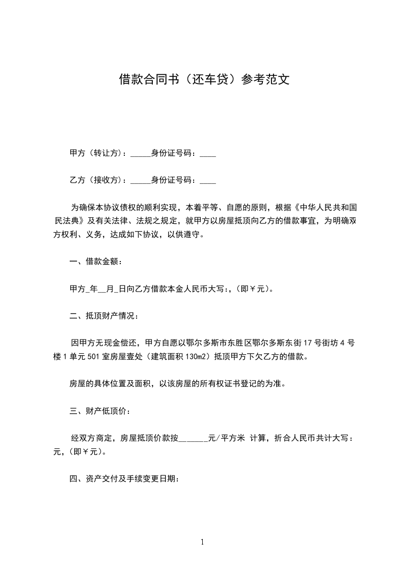 甲方应_年__月_日前,将本协议抵顶的房屋、钥匙、水、电及天然卡等相关财产及手续移交给乙方。否则,甲方必须一次性还清所欠乙方的所有本金及利息。或乙方有权住入甲方所抵房中直至房产证变更为止。