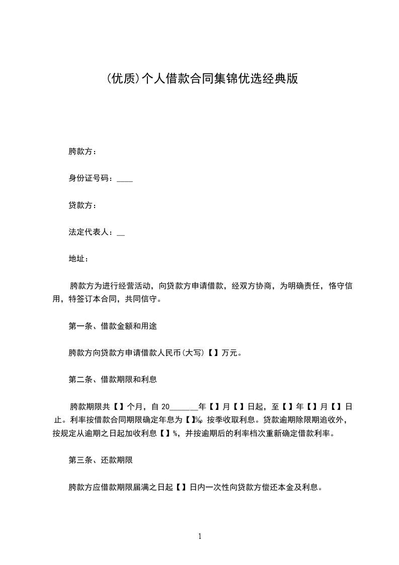 胯款期限共【】个月,自20_______年【】月【】日起,至【】年【】月【】日止。利率按借款合同期限确定年息为【】‰,按季收取利息。贷款逾期除限期追收外,按规定从逾期之日起加收利息【】%,并按逾期后的利率档次重新确定借款利率。
