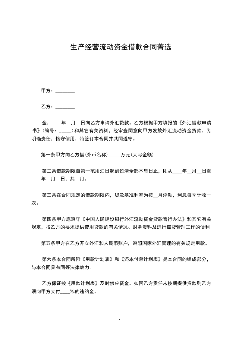 借款方因生产经营活动,流动资金出现短缺,向贷款方借款,双方本着互惠互利的原则,经双方友好协商,特订立本合同,以便共同遵守。