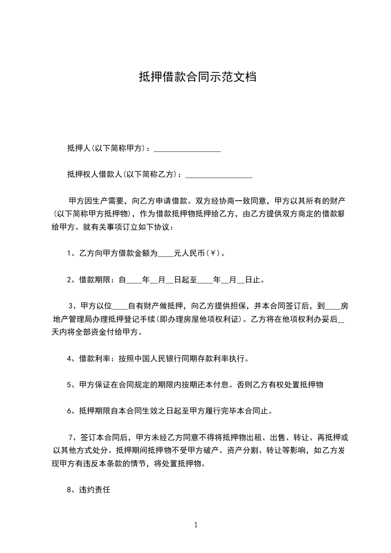 甲方因生产需要,向乙方申请借款。双方经协商一致同意,甲方以其所有的财产(以下简称甲方抵押物),作为借款抵押物抵押给乙方,由乙方提供双方商定的借款额给甲方。就有关事项订立如下协议:
