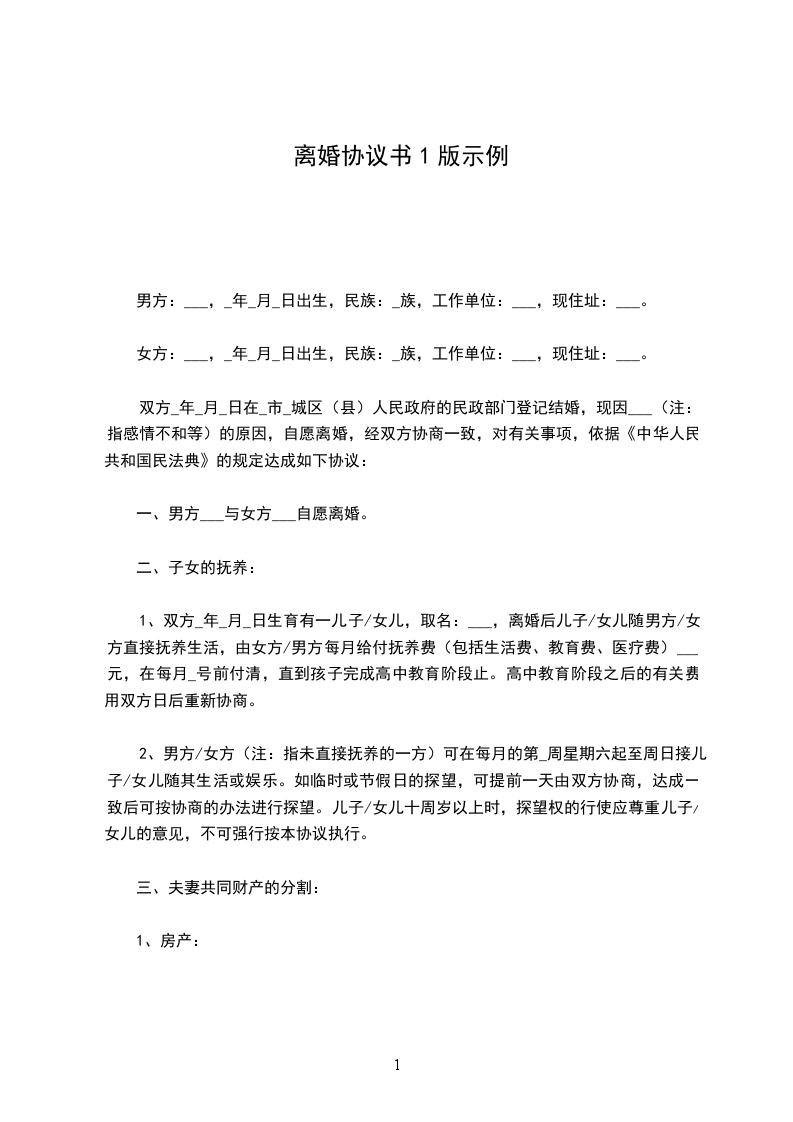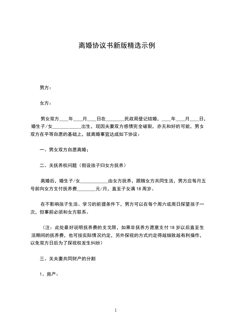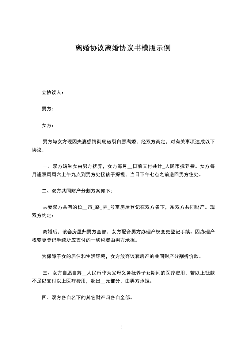 (注:在民政局签订离婚协议后,最好是到处或是仲裁委对该协议进行或是仲裁,这样的话当双方履行协议发生纠纷时,只需向申请强制执行即可,否则又要提起诉讼,要求另一方履行协议)