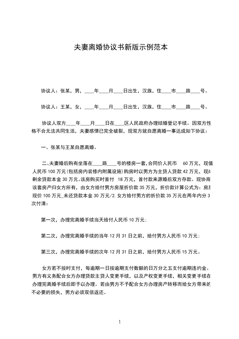 (注:此条是为了约束双方履行协议,现实生活中,也存在很多离婚后不履行协议的情况)