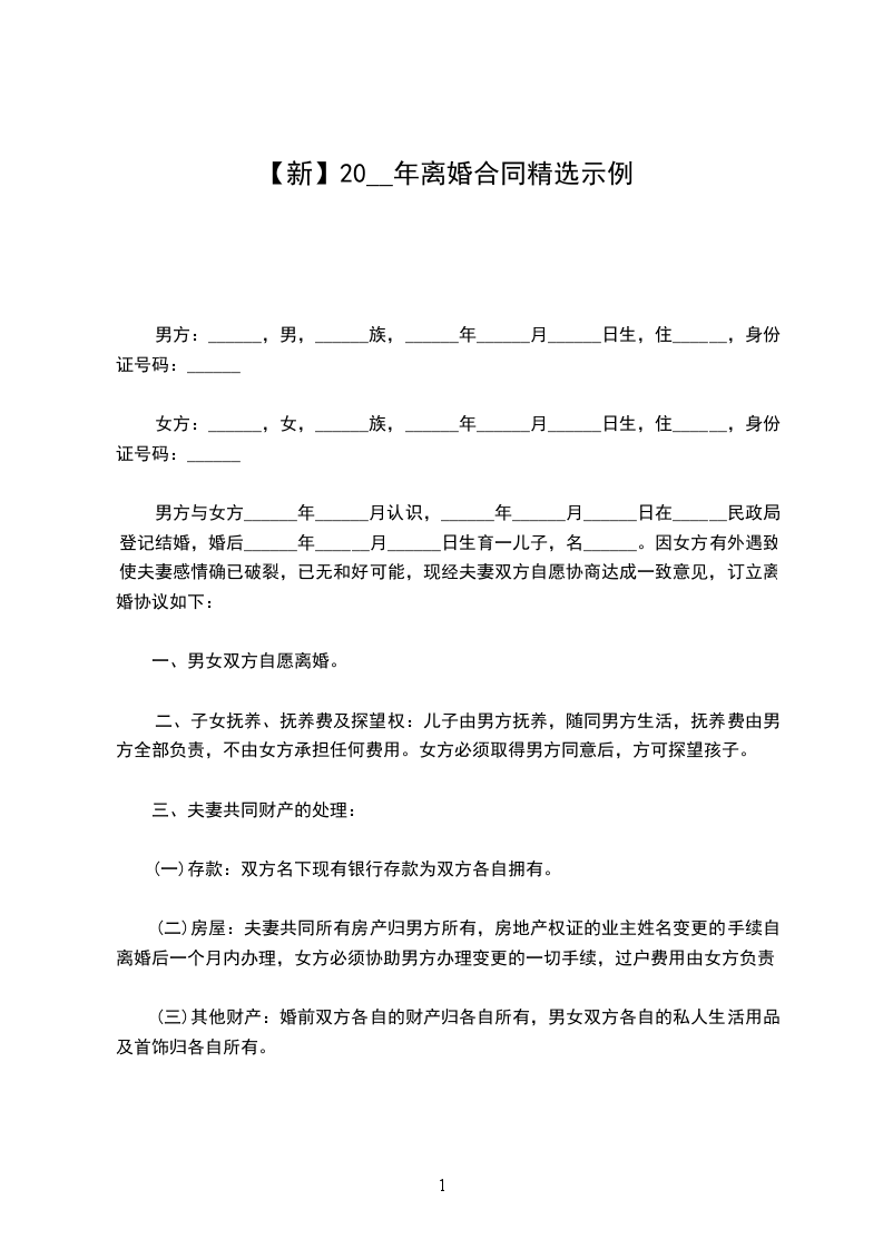 (注:此条款可用当一方有过错时对另一方的补偿条款,但只能由双方协商而成,故离婚谈判也需要技巧啊!)
