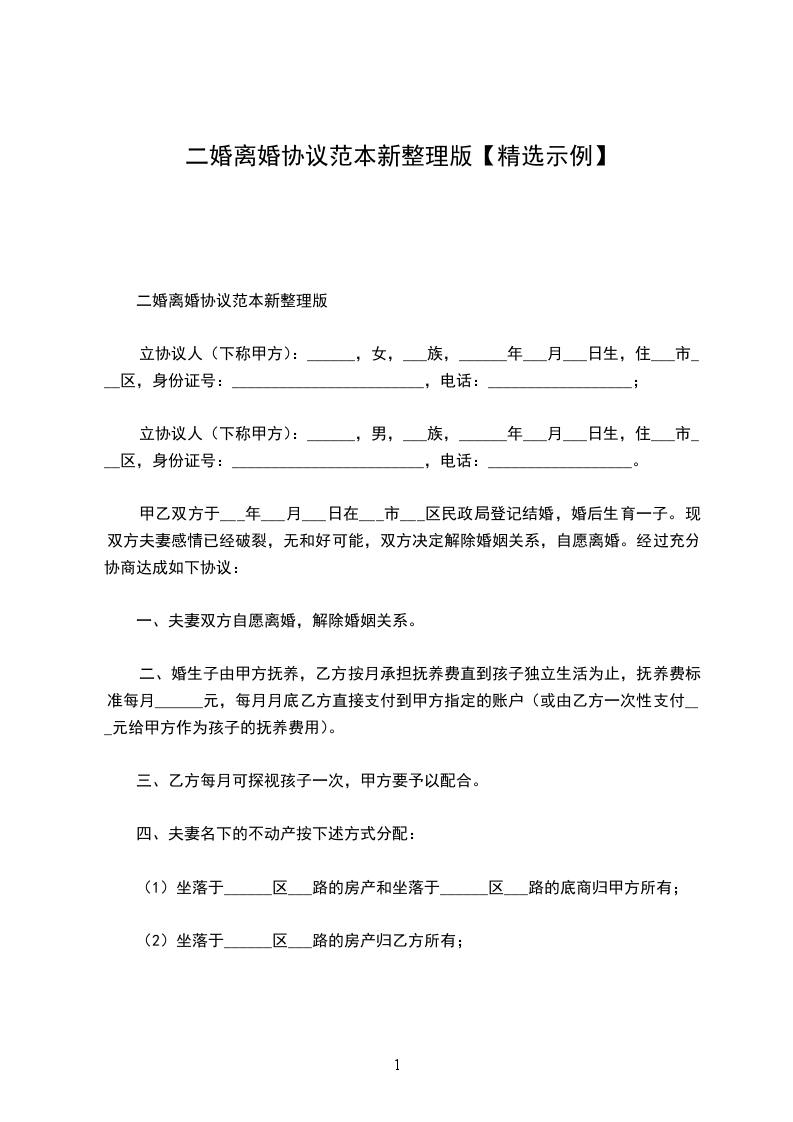 (注:此处按双方协商的结果来约定,如果房产有多套,就一直按此方法进行罗列,主要是写清楚房产的归属,过户手续,补偿方法等)(题外话:邱律团队办理的离婚案件中,房产最多的一个案件中,房产的罗列就写了两页纸,土豪啊)