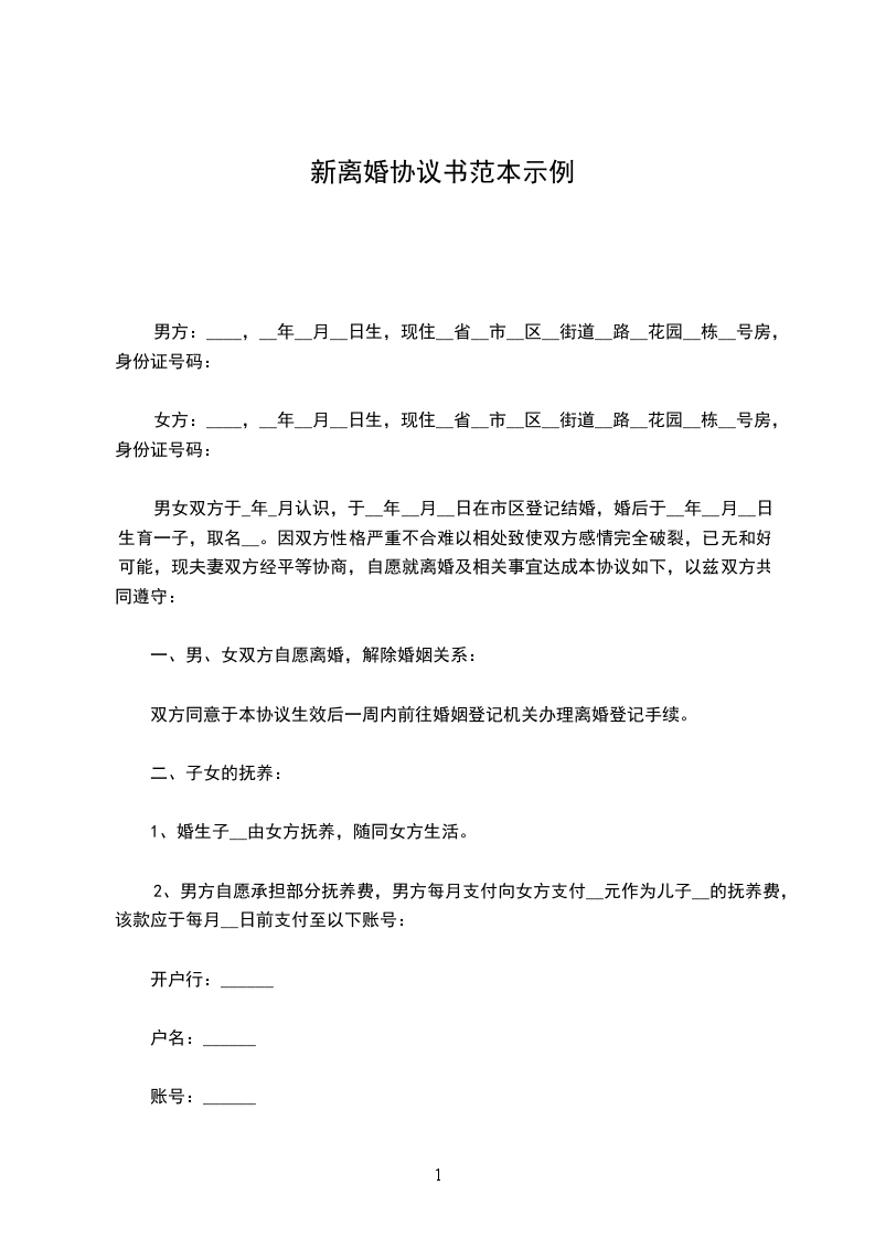 男女双方____年____月____日在________民政局登记结婚,____年____月____日,婚生子/女____________出生,现因夫妻双方感情完全破裂,亦无和好的可能,男女双方在平等自愿的基础上,就离婚事宜达成如下协议: