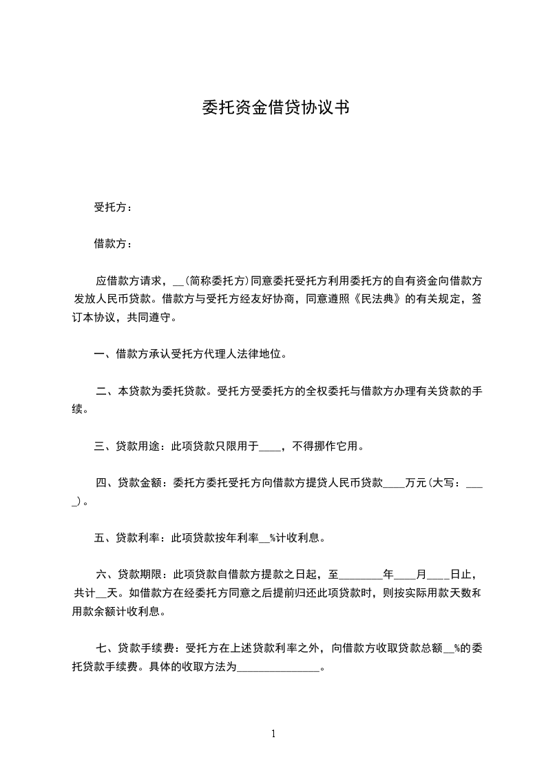 应借款方请求,__(简称委托方)同意委托受托方利用委托方的自有资金向借款方发放人民币贷款。借款方与受托方经友好协商,同意遵照《民法典》的有关规定,签订本协议,共同遵守。